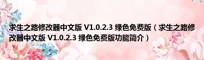 导读 大家好,关于求生之路修改器中文版 V1 0 2 3 绿色免费版,求生之路修改器中文版 V1 0 2 3 绿色免费版功能简介这个很多人还不知道,小勒来