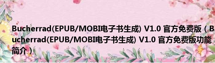 导读 大家好,关于Bucherrad(EPUB MOBI电子书生成) V1 0 官方免费版,Bucherrad(EPUB MOBI电子书生成) V1 0 官方免费版功能简介这个很多人还