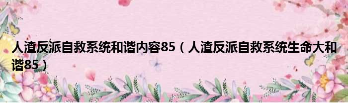 人渣反派自救系统和谐内容85(人渣反派自救系统生命大和谐85)