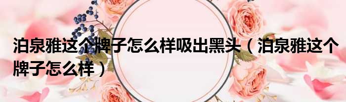 泊泉雅这个牌子怎么样吸出黑头(泊泉雅这个牌子怎么样)