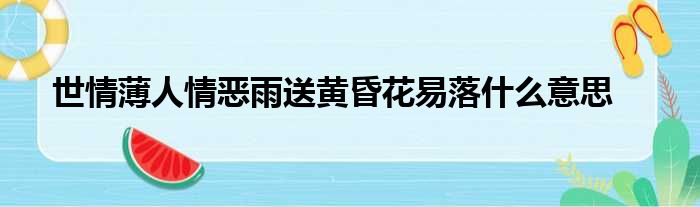 导读 大家好,今天小六子来为大家解答以下的问题,关于世情薄人情恶雨送黄昏花易落什么意思这个很多人还不知道,现在让我们一起来看看吧!1、释义