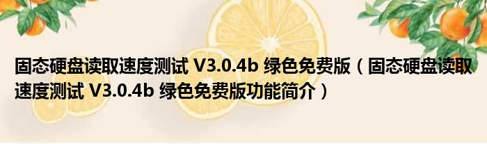 固态硬盘读取速度测试 V3.0.4b 绿色免费版(固态硬盘读取速度测试 V3.0.4b 绿色免费版功能简介)
