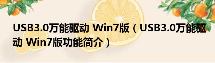 USB3.0万能驱动 Win7版(USB3.0万能驱动 Win7版功能简介)