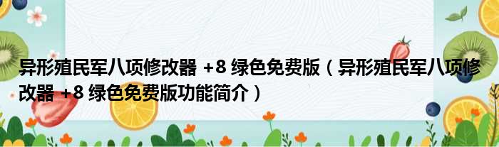 异形殖民军八项修改器 +8 绿色免费版(异形殖民军八项修改器 +8 绿色免费版功能简介)