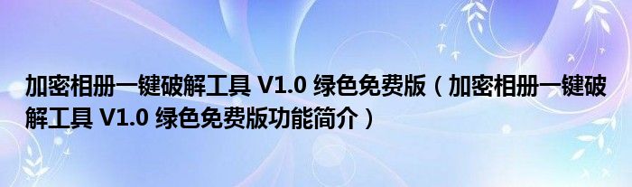 加密相册一键破解工具 V1.0 绿色免费版(加密相册一键破解工具 V1.0 绿色免费版功能简介)