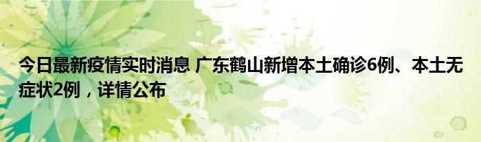 今日最新疫情实时消息 广东鹤山新增本土确诊6例、本土无症状2例,详情公布