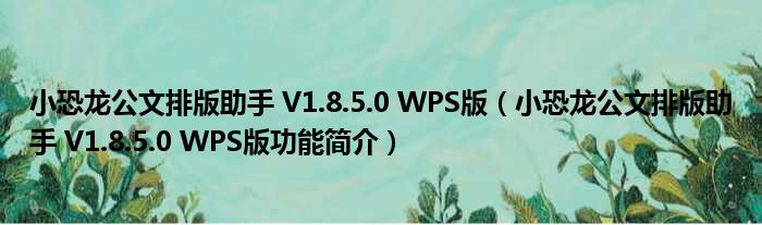 小恐龙公文排版助手 V1.8.5.0 WPS版(小恐龙公文排版助手 V1.8.5.0 WPS版功能简介)