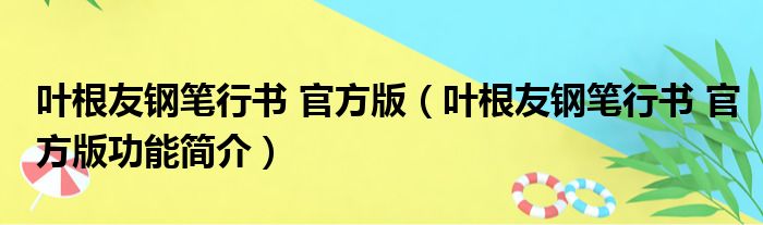 叶根友钢笔行书 官方版(叶根友钢笔行书 官方版功能简介)