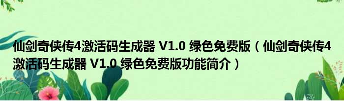 仙剑奇侠传4激活码生成器 V1.0 绿色免费版(仙剑奇侠传4激活码生成器 V1.0 绿色免费版功能简介)