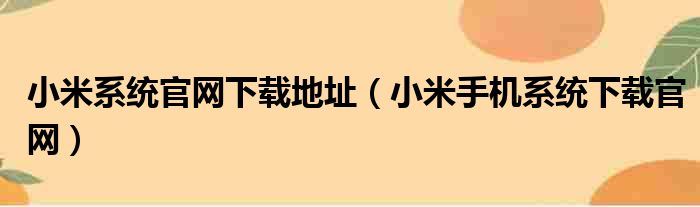 大家好,今天小六子来为大家解答以下的问题,关于小米系统官网下载地址,小米手机系统下载官网这个很多人还不知道,现在让我们一起来看看吧!
