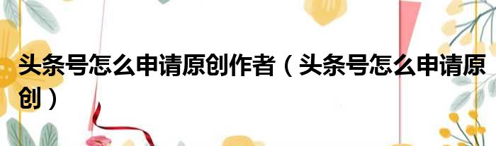 头条号怎么申请原创作者(头条号怎么申请原创)