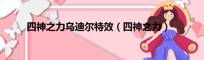 大家好,今天小六子来为大家解答以下的问题,关于四神之力乌迪尔特效,四神之力这个很多人还不知道,现在让我们一起来看看吧!