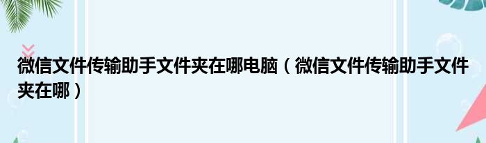 微信文件传输助手文件夹在哪电脑(微信文件传输助手文件夹在哪)