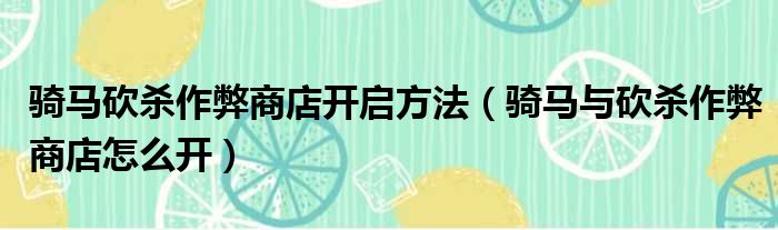 导读 大家好,今天小六子来为大家解答以下的问题,关于骑马砍杀作弊商店开启方法,骑马与砍杀作弊商店怎么开这个很多人还不知道,现在让我们一起