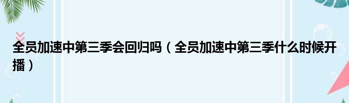 导读 大家好,今天小六子来为大家解答以下的问题,关于全员加速中第三季会回归吗,全员加速中第三季什么时候开播这个很多人还不知道,现在让我们