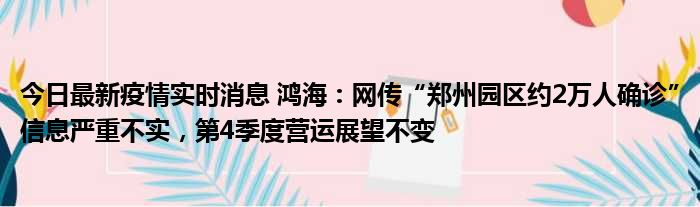 今日最新疫情实时消息 鸿海:网传“郑州园区约2万人确诊”信息严重不实,第4季度营运展望不变