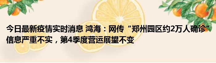今日最新疫情实时消息 鸿海:网传“郑州园区约2万人确诊”信息严重不实,第4季度营运展望不变