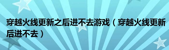 穿越火线更新之后进不去游戏(穿越火线更新后进不去)