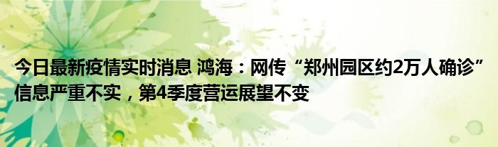 今日最新疫情实时消息 鸿海:网传“郑州园区约2万人确诊”信息严重不实,第4季度营运展望不变