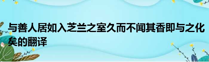 大家好,今天小六子来为大家解答以下的问题,关于与善人居如入芝兰之室久而不闻其香即与之化矣的翻译这个很多人还不知道,现在让我们一起来看看吧!