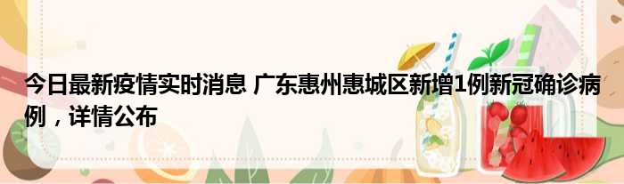 今日最新疫情实时消息 广东惠州惠城区新增1例新冠确诊病例,详情公布