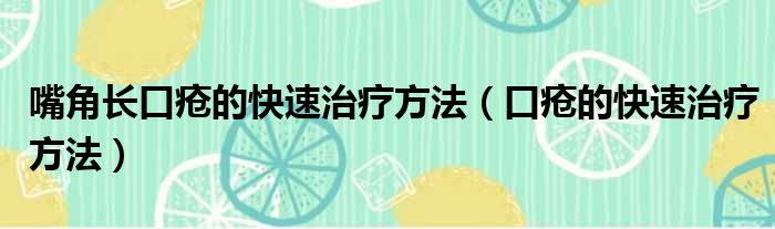 嘴角长口疮的快速治疗方法(口疮的快速治疗方法)