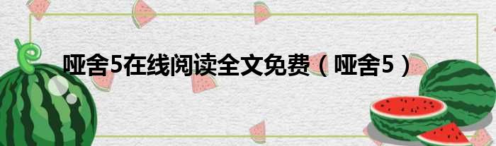 大家好,今天小六子来为大家解答以下的问题,关于哑舍5在线阅读全文免费,哑舍5这个很多人还不知道,现在让我们一起来看看吧!