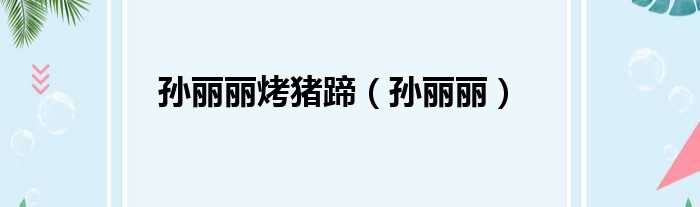 大家好,今天小六子来为大家解答以下的问题,关于孙丽丽烤猪蹄,孙丽丽这个很多人还不知道,现在让我们一起来看看吧!