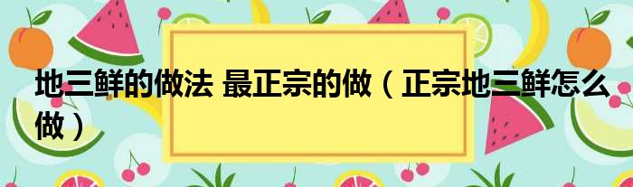 地三鲜的做法 最正宗的做(正宗地三鲜怎么做)