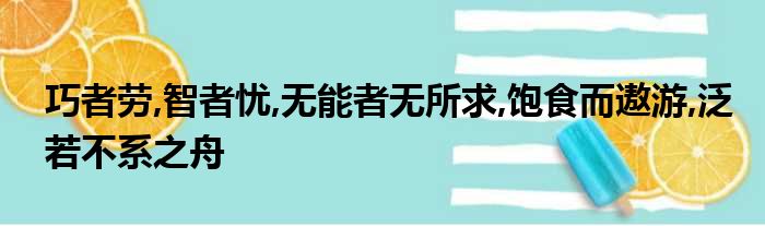 巧者劳,智者忧,无能者无所求,饱食而遨游,泛若不系之舟