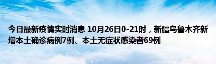 今日最新疫情实时消息 10月26日0-21时,新疆乌鲁木齐新增本土确诊病例7例、本土无症状感染者69例