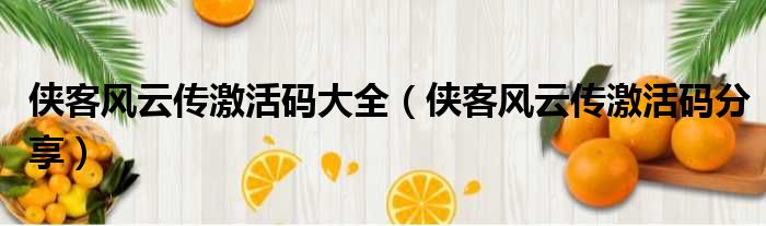 大家好,今天小六子来为大家解答以下的问题,关于侠客风云传激活码大全,侠客风云传激活码分享这个很多人还不知道,现在让我们一起来看看吧!