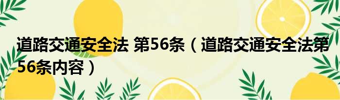 导读 大家好,今天小六子来为大家解答以下的问题,关于道路交通安全法 第56条,道路交通安全法第56条内容这个很多人还不知道,现在让我们一起来