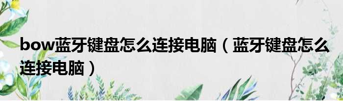 bow蓝牙键盘怎么连接电脑(蓝牙键盘怎么连接电脑)