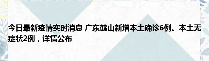 今日最新疫情实时消息 广东鹤山新增本土确诊6例、本土无症状2例,详情公布