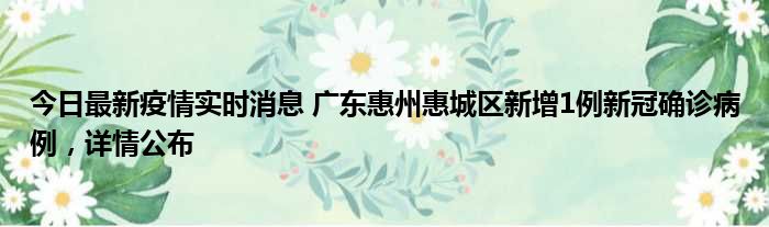 今日最新疫情实时消息 广东惠州惠城区新增1例新冠确诊病例,详情公布
