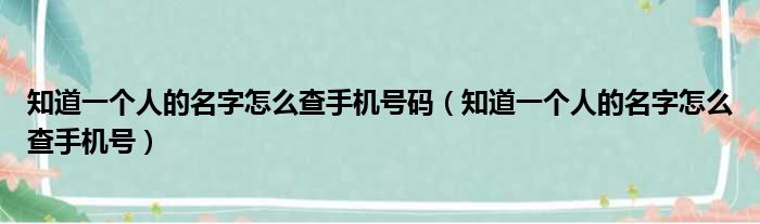 知道一个人的名字怎么查手机号码(知道一个人的名字怎么查手机号)