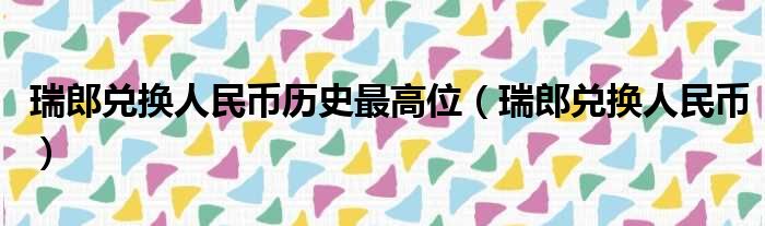 瑞郎兑换人民币历史最高位(瑞郎兑换人民币)