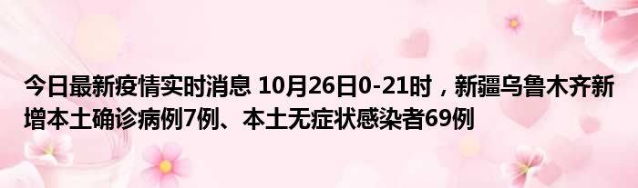 今日最新疫情实时消息 10月26日0-21时,新疆乌鲁木齐新增本土确诊病例7例、本土无症状感染者69例