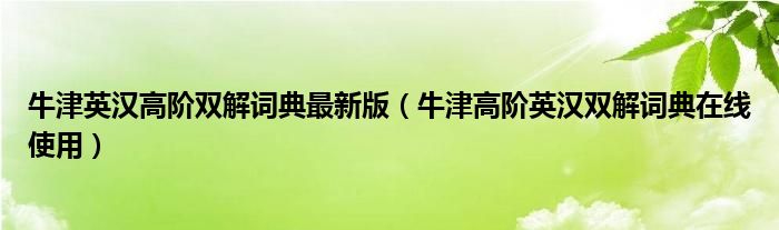 牛津英汉高阶双解词典最新版(牛津高阶英汉双解词典在线使用)