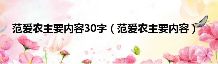 大家好,今天小六子来为大家解答以下的问题,关于范爱农主要内容30字,范爱农主要内容这个很多人还不知道,现在让我们一起来看看吧!
