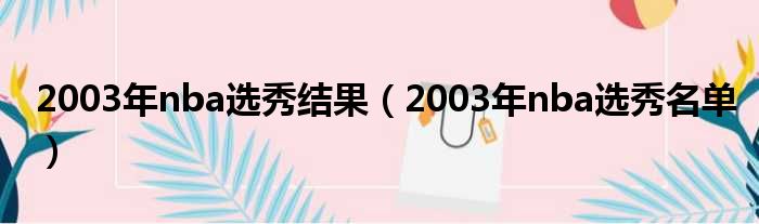 大家好,今天小六子来为大家解答以下的问题,关于2003年nba选秀结果,2003年nba选秀名单这个很多人还不知道,现在让我们一起来看看吧!