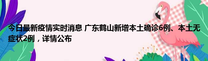 今日最新疫情实时消息 广东鹤山新增本土确诊6例、本土无症状2例,详情公布