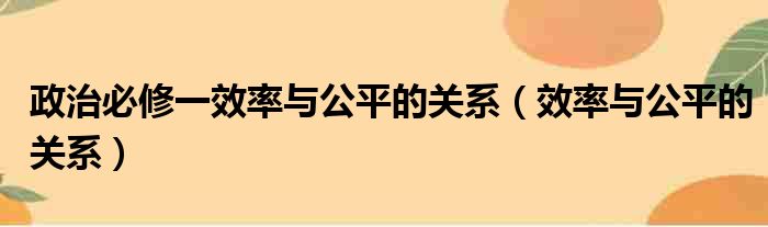 导读 大家好,今天小六子来为大家解答以下的问题,关于政治必修一效率与公平的关系,效率与公平的关系这个很多人还不知道,现在让我们一起来看看