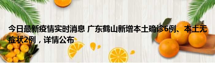 今日最新疫情实时消息 广东鹤山新增本土确诊6例、本土无症状2例,详情公布
