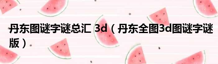 丹东图谜字谜总汇 3d(丹东全图3d图谜字谜版)