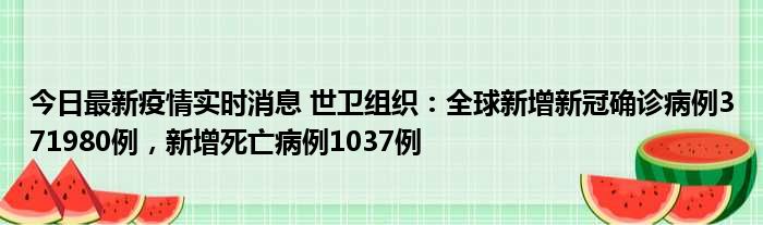 今日最新疫情实时消息 世卫组织:全球新增新冠确诊病例371980例,新增死亡病例1037例