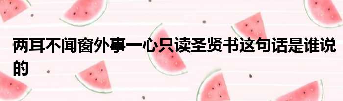 导读 大家好,今天小六子来为大家解答以下的问题,关于两耳不闻窗外事一心只读圣贤书这句话是谁说的这个很多人还不知道,现在让我们一起来看看吧