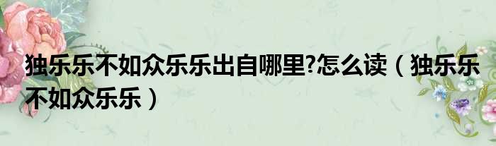 独乐乐不如众乐乐出自哪里?怎么读(独乐乐不如众乐乐)