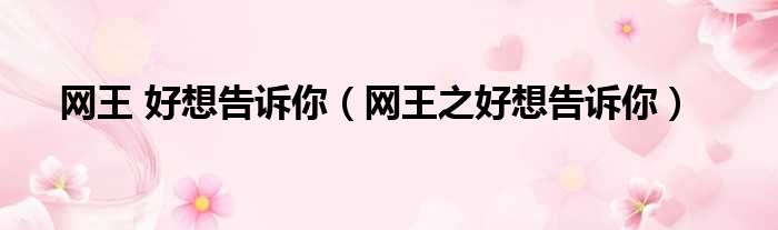 导读 大家好,今天小六子来为大家解答以下的问题,关于网王 好想告诉你,网王之好想告诉你这个很多人还不知道,现在让我们一起来看看吧!1、已私